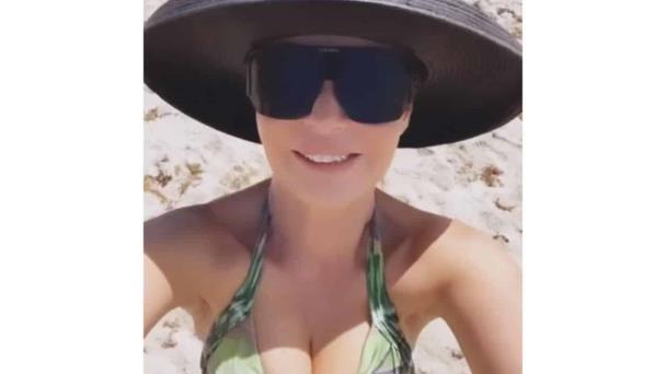 “¡Mis ángeles! ¡Ustedes querían ver más del resultado de mi cirugía por las historias que subí hoy, entonces acá les dejo este video! ¡Disfrutando en la playa! ¡Yo necesitaba descansar porque ustedes saben que soy imparable, pero también sé que el descanso es un factor importante para la salud y bienestar! Así como el tiempo con la familia y los amigos!”, escribió junto al clip en el que se le ve bailando en bikini sobre la arena.