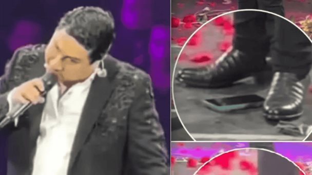 Julión Álvarez desata críticas tras pisotear un costo celular en el escenario.