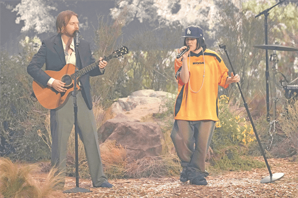 En un escenario diseñado para parecerse a las montañas de Los Ángeles, Billie Eilish, una orgullosa angelina, y su hermano y colaborador, Finneas, interpretaron su éxito "Birds of a Feather". Fue una de las varias maneras en que la gala busca rendir homenaje a la ciudad. "Te amamos LA", le dijo ella a la multitud al final del set.