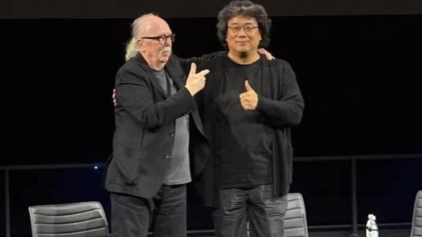 Bong Joon Ho y John Carpenter, durante una proyección restaurada en 4K de La Cosa, de Carpenter, en Los Ángeles.