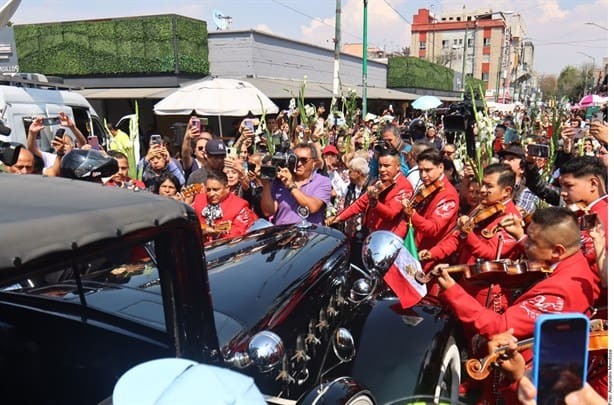 "Eres leyenda", pregonaba la cartulina de una señora. Algunos aventaban flores al vehículo. En la parte trasera de la carroza bajaron las cenizas por unos minutos y la gente las rodeó mientras el mariachi se hacía escuchar.