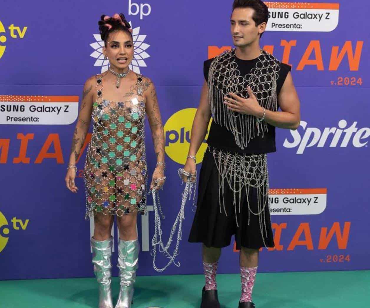 Tan enamorado anda el llamado "Halcón", que en la reciente entrega de los premios MTV MIAW 2024 portó en su look un detalle calificado por muchos como "cursi", muy "ad hoc" al momento que ambos están viviendo como pareja.