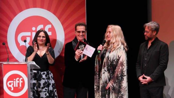 "Más música, más poesía y esperamos cine, más mensajes ecológicos y yo estoy esperando esta serie de su vida y su familia que espero sea el siguiente paso", dijo Sarah Hoch, directora del GIFF, antes de entregarle al cantante el reconocimiento máximo que tiene el festival.