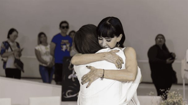 Entre los asistentes se encuentran Araceli y Gabriela. Antes de acercarse, los nervios son evidentes; después del abrazo, algo cambia. "Es muy bonito, ella tiene una vibra especial que te da calma", comparte Araceli al terminar su turno.