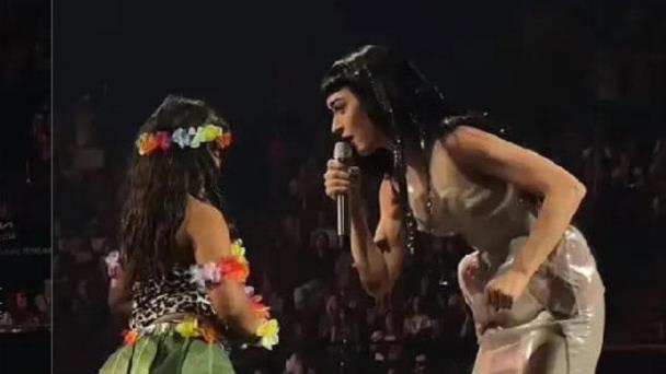 Katy Perry compartió un emotivo gesto con una fanática del público luego de invitarla a subir al escenario y anima a la niña mexicana a decir su país de origen sin temor.