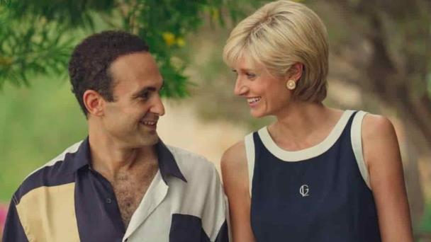 Princesa Diana de Gales y Dodi Al-Fayed en la serie de Netflix.
