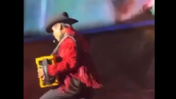 El famoso Tigre Mayor, Jorge Hernández, de 72 años, líder y cantante de Los Tigres del Norte, le hizo honor al apodo de "Los Incansables", pues sufrió tremenda caída en un concierto que ofrecieron en San Luis Potosí, pero nunca dejó de cantar.