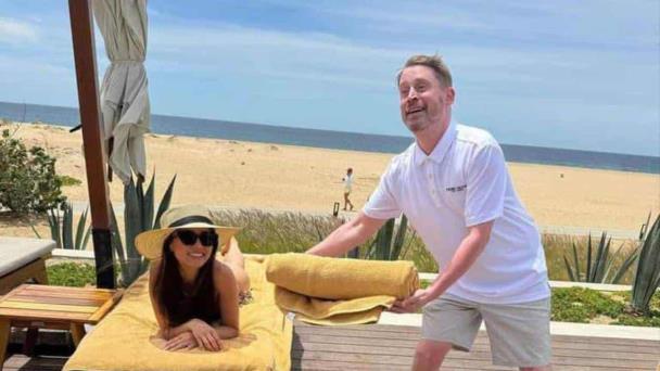 La dupla se relajó en un resort de lujo junto al mar antes de la celebración anticipada del cumpleaños 45 del actor, que será el 26 de este mes. Song disfrutó del sol y la playa con un bikini negro; Culkin lo hizo con una camisa y shorts cortos rojos con estampado.