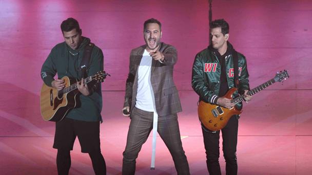 "Soy tu mejor amigo, tu pañuelo de lágrimas", canta Gabito Ballesteros mientras se confiesa fan de Reik desde pequeño, algo que sorprende a los integrantes del grupo.