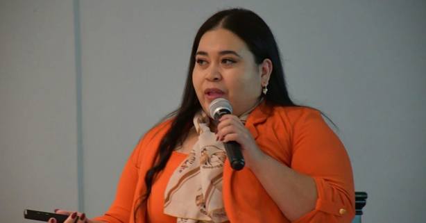 Al cierre de la conferencia, subió al escenario la Lic. Erika Campos Juárez, Coordinadora del Centro Libre Reynosa, quien compartió con los asistentes la Cartilla de los Derechos de las Mujeres, una herramienta fundamental para promover la información, la protección y el empoderamiento.