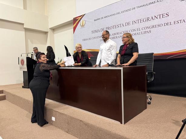 Como parte de sus actividades programadas, la Barra de Abogadas del Estado de Tamaulipas, A.C., delegación Reynosa-Río Bravo, asistió a la solemne sesión en el Congreso del Estado para ser testigo de la firma de un convenio.