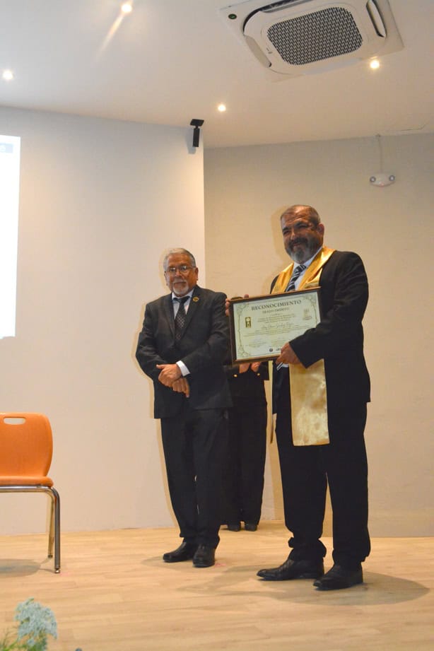 Para concluir, un punto de importancia para el Colegio fue la investidura a Emérito el Mpru. Arq. Efraín Sánchez Reyna, por parte del presidente de la Junta de Honor y Justicia, Arq. Gerardo Rubio Guerrero.