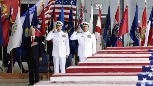 Los restos llegaron procedentes de Corea del Sur a la base naval de Pearl Harbor en Hawai, donde se celebró una ceremonia oficiada por el vicepresidente, Mike Pence.