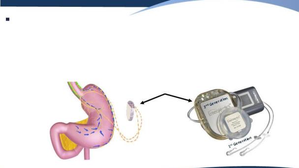 El sistema consiste en un generador de pulsos eléctricos recargable, terminales eléctricas y electrodos implantados quirúrgicamente en el abdomen.