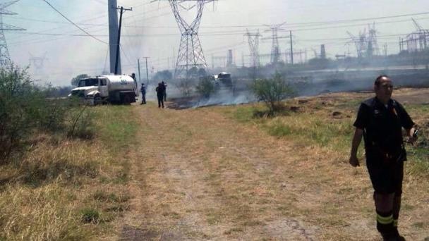 PELIGRO.En Pesquería, Nuevo León, un estallido e incendio en una torre de alta tensión de la CFE movilizó a las autoridades que reportaron dos muertos.