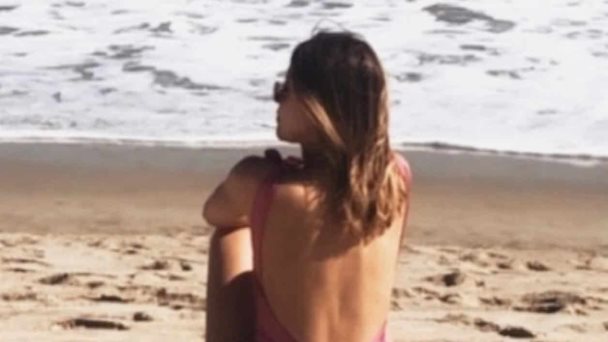 En una de las fotos aparece sentada en la playa luciendo su espalda descubierta.