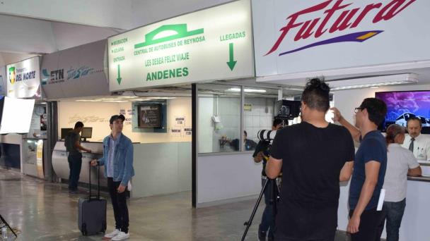 Estudiante de cinematografía en Monterrey, acompañado de equipos de producción, filman un cortometraje en las instalaciones de la Central de Autobuses, con el objetivo de cambiar la mala imagen que tiene Reynosa en otras ciudad en cuestión de seguridad.