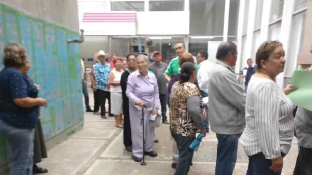 Personas con bastones y a paso lento se enfilan a la ventanilla para recibir dos mil 800 pesos que les entregan de parte de la administración gubernamental.