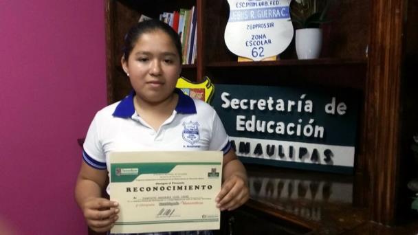 El maestro José Guadalupe Martínez Méndez, profesor de la alumna, dijo que por tal motivo hoy esta niña se prepara para participar en el certamen estatal Jugando con las Matemáticas, el cual se realizará en Victoria.