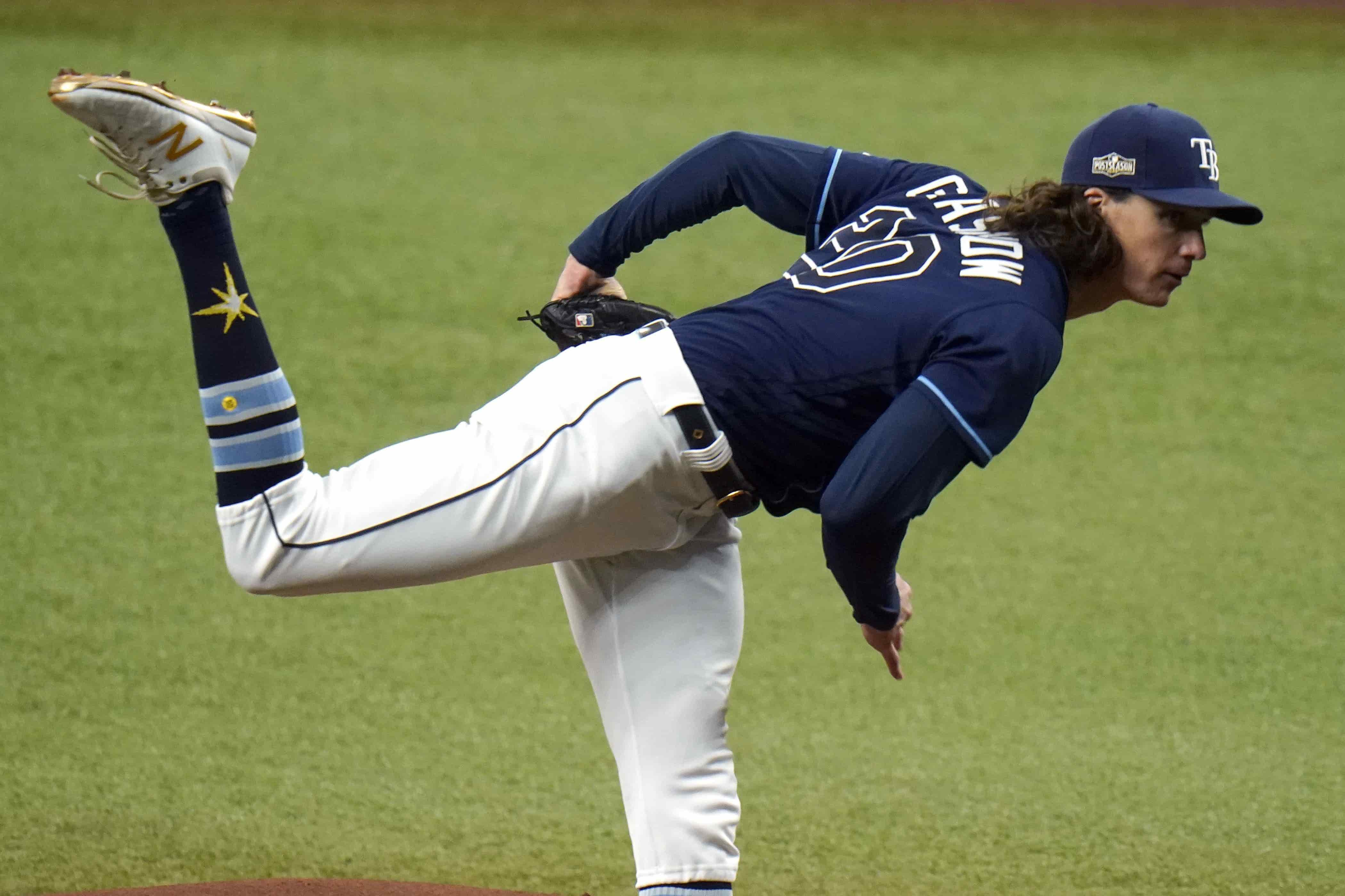 Glasnow regaló un boleto y recetó ocho ponches ante un grupo pequeño de amigos y familiares, a quienes se permitió el ingreso en el Tropicana Field.
