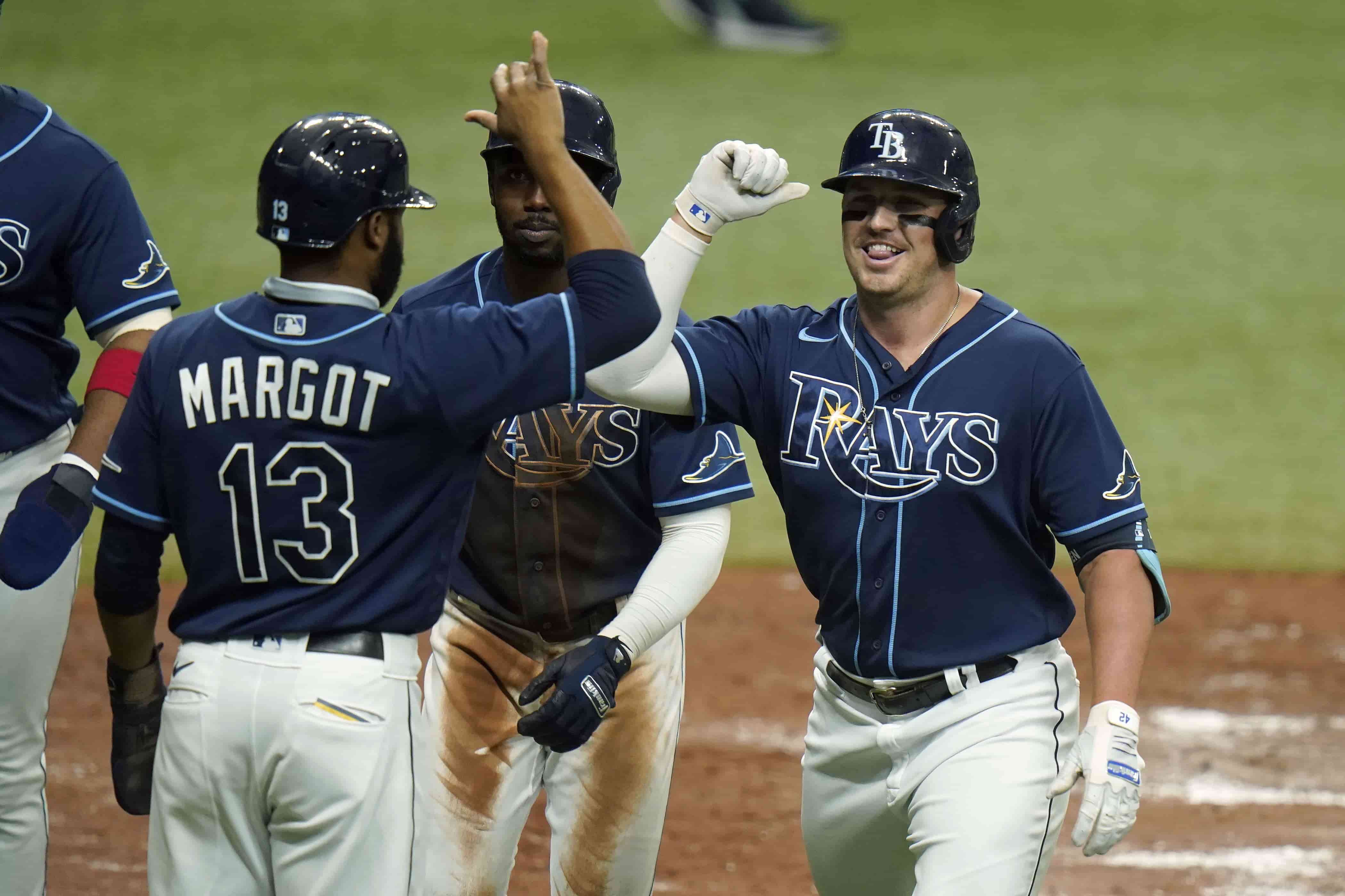 Por los Rays, los cubanos Arozarena de 4-3 con dos anotadas y una empujada, Yandy Díaz de 2-0 con una anotada. Los dominicanos Margot de 4-1 con una anotada y una empujada, Willy Adames de 4-1.