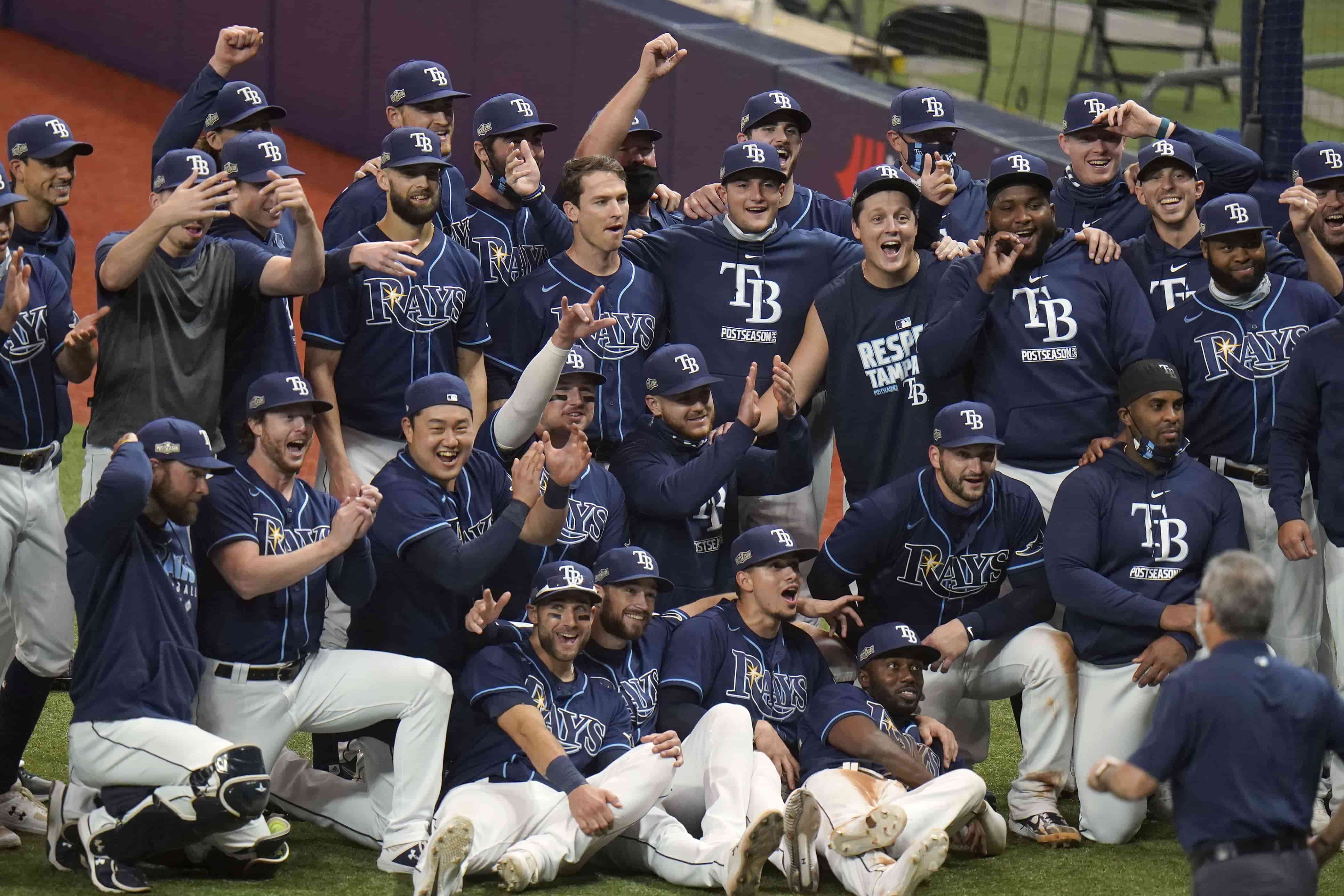 Tras el último out, los Rays festejaron con algunos abrazos y apretones de manos.