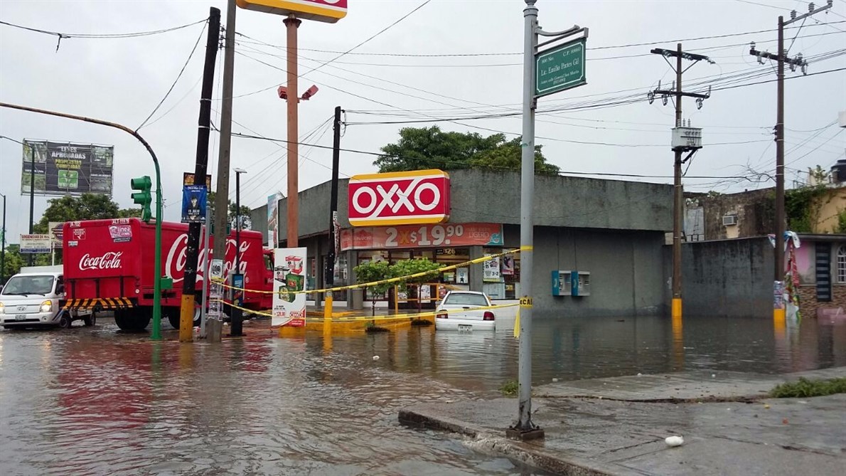 En Tampico la mayor afectación se registró en la zona de los Mercados, Plaza las Hijas de Tampico y la caída de un vehículo a una zanja en la calle Loma Real del Sector Infonavit.