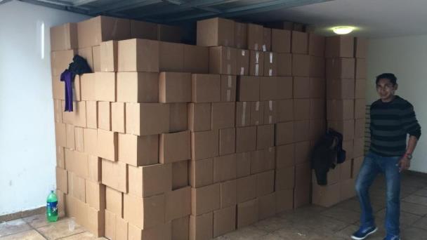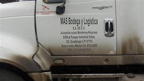 Los paquetes contienen artículos de la canasta básica y se bajaron de un caja de tráiler color blanco, de dos ejes, con capacidad para 20 toneladas, con razón social MAS Bodega y Logística S.A. DE C.V. empresa ubicada en autopista de cuota Monterrey-Reynosa del Parque Industrial Kalos de Guadalupe, Nuevo León