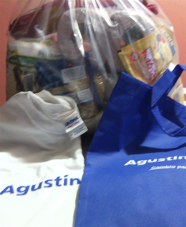 Además de constatarse en las gráficas como dentro del mismo domicilio ya tienen despensas elaboradas en bolsa de plástico transparente, así como playeras, mochilas, bolsas de tela entre otros artículos con la leyenda Agustín Chapa.