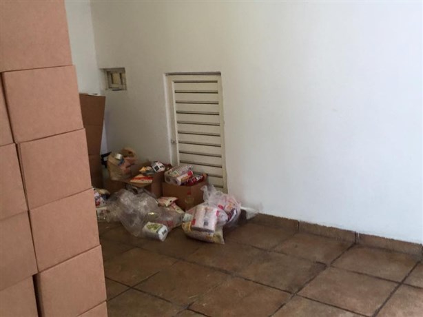 CAJAS. Apilan en cuarto cajas llenas de alimentos básicos.