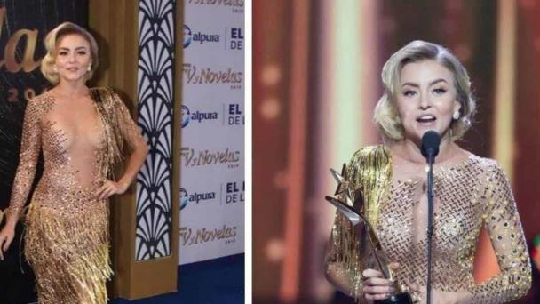 ASÍ LUCIÓ. El vestido de Angelique Boyer antes de la ceremonia y durante la entrega.