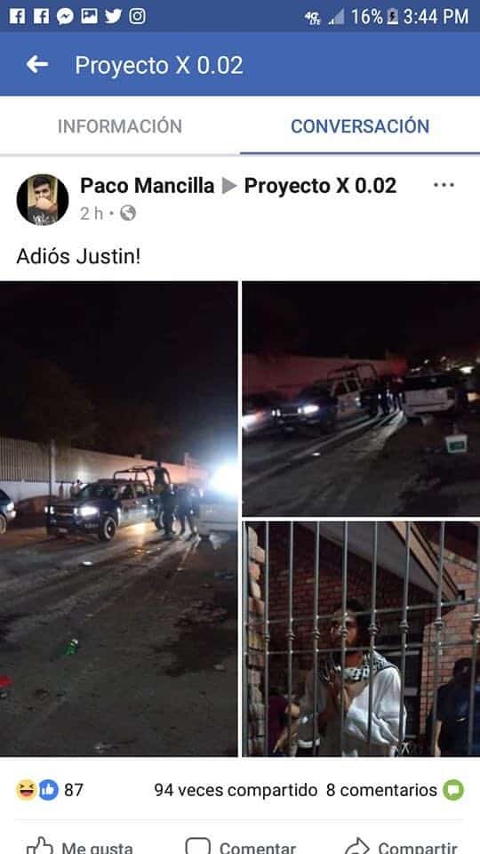 La fiesta denominada Proyecto X 0.02 que se realizó en las calles Paseo de las Jacarandas con Paseo de los Barcios a un costado de Cetis 71, fue programada desde hace algunos meses atrás y se hizo la invitación por las redes sociales al público en general.
