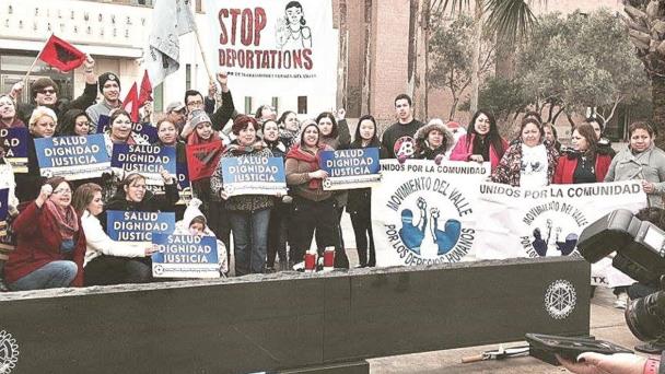 Representantes de grupos pro migrantes unidos en la comunidad en Brownsville, Texas, elevaron la voz, como parte de una protesta pacífica frente a la Corte Federal para manifestarse en contra de la acción ejecutiva que abandera en Texas el gobernador electo Gregg Abbott.