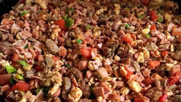 - El disco se pone sobre una flama abierta y los ingredientes se van incorporando uno a la vez, las porciones iguales de carnes son sazonadas y marinadas de acuerdo a la preferencia del cocinero y sus comenzales.