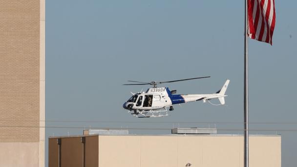 EMERGENCIA. Un helicóptero policiaco sobrevuela el área del hospital militar donde se registró el tiroteo, personal médico y pacientes son desalojados del complejo hospitalario. (Agencia AP).
