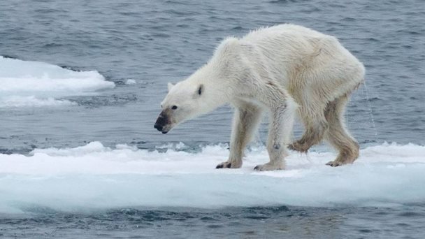 Una nueva fotografía viral circula por Facebook, la imagen es de una osa polar que está prácticamente en los huesos y muestra la cruda realidad que viven algunas especies por el calentamiento global.