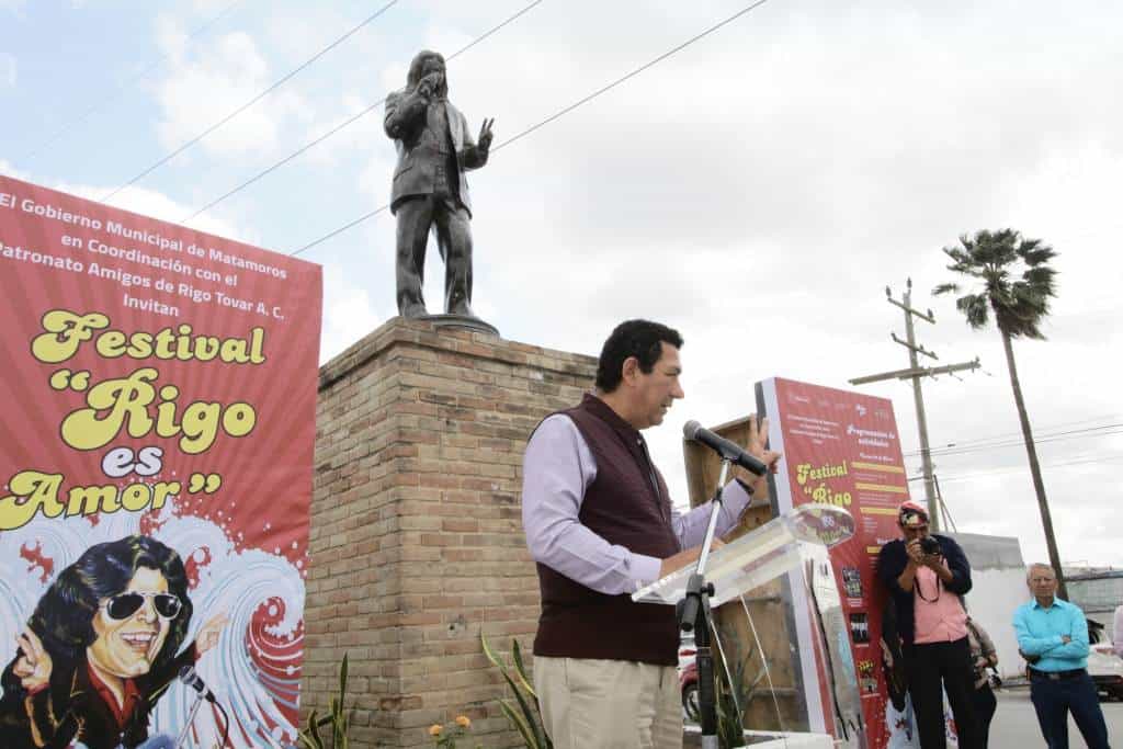 Al dirigir un mensaje a los asistentes, el Presidente Municipal se refirió a Rigo Tovar “como un gran ciudadano, que en su momento nos dio y nos sigue dando alegría, que sentimos en nuestros corazones al escuchar su música; es ahí donde queda inmortalizado Rigo Tovar”.