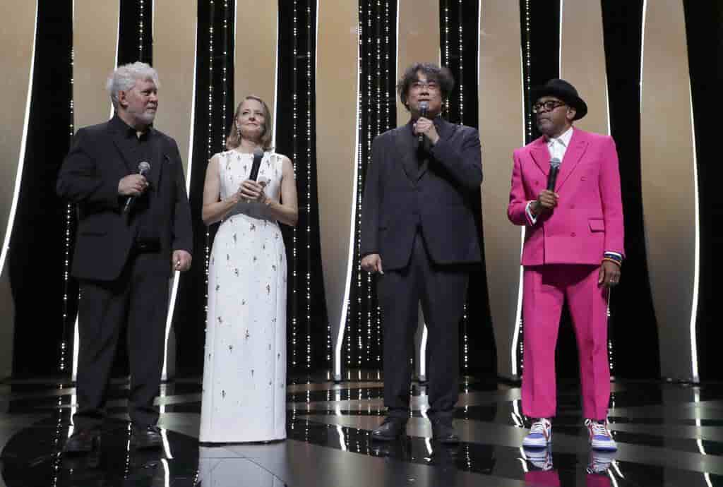 Pedro Almodóvar, Jodie Foster, Bong Joon Ho y el presidente del jurado Spike Lee en la ceremonia inaugural.