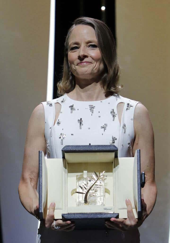 Jodie Foster lució radiante y feliz vestida de blanco para recibir la Palma de Oro honorífica que le otorgó Pedro Almodóvar. “Es un honor para mí estar aquí, primero porque se trata de celebrar el cine y segundo, porque se trata de celebrar a Jodie. Querida Jodie antes de conocerte personalmente te conocí como una niña actriz que me emocionó. Eres productora, directora, guionista y actriz pero sobre todo una mujer que ha sido fiel a sí misma”, expresó Almodóvar en un sentido discurso a la actriz que pronunció de memoria.