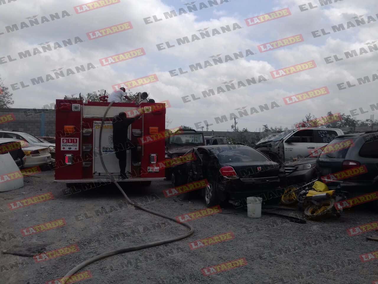 Incendio en corralón consume 13 vehículos, en la Col. Esfuerzo Nacional
