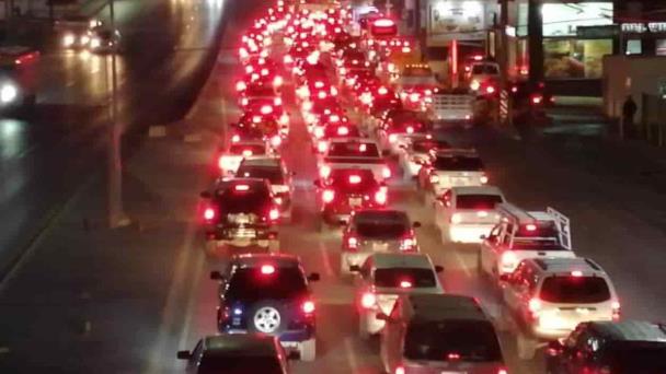 Un intenso y caótico tráfico vehicular se registra esta noche en el Boulevard Hidalgo por causa del cierre de un carril de circulación en el Puente Vehicular Broncos, la restricción ha provocado kilométricas filas de autos que no realizan los altos frente a semáforos agravando aún más el congestionamiento.