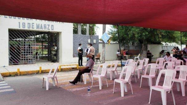 Se desconoce el porqué se canceló una de las dos sedes, lo que ocasionó que las filas se extendieran aún más, pese a que se estaba aplicando la dosis a las personas de los poblados y ejidos, así cómo a quienes su apellido iniciara de la letra A a la lera C en su apellido.
