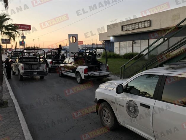 Matamoros, Tam.- Elementos de la Policía Estatal y Policía Investigadora se encuentran en las afueras de una bodega que se ubica en la avenida Lauro Villar esquina con Palmas, en espera de una orden para entrar a revisar el inmueble.