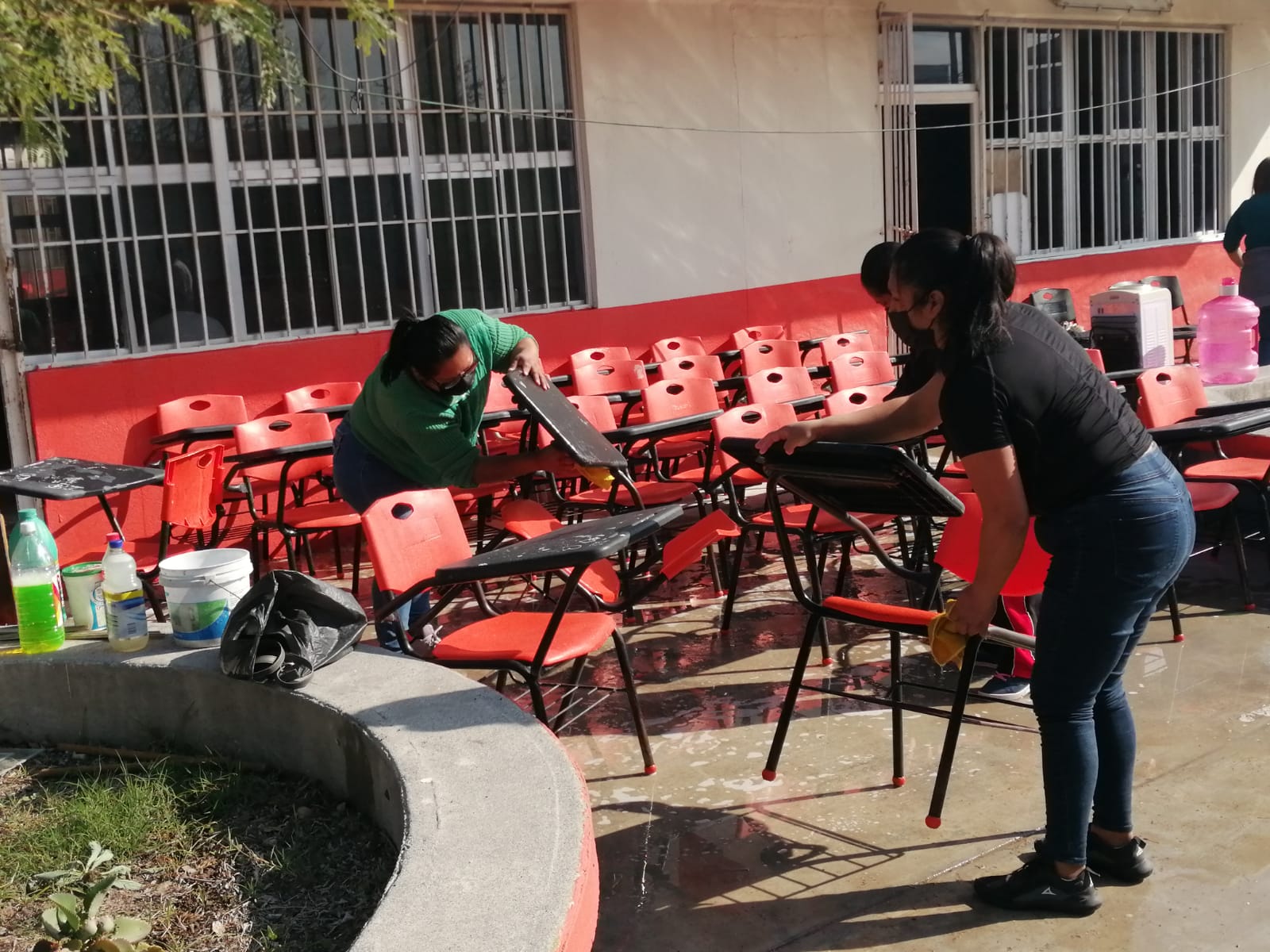 Planteles escolares de la ciudad optaron por iniciar actividades con labores de mantenimiento y conservación en las escuelas, tras 23 meses de ausencia por la Pandemia por Covid 19. El regreso a las instalaciones educativas se realiza con el interes de cumplir con los protocolos sanitarios y garantizar un ambiente seguro para los estudiantes y personal docente.