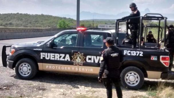 VIGILAN. En la Carretera Monterrey-Ciudad Victoria, en los límites de Linares, Nuevo León con Tamaulipas, se observa a uniformados de Fuerza Civil estatal en uno de los puntos de vigilancia.