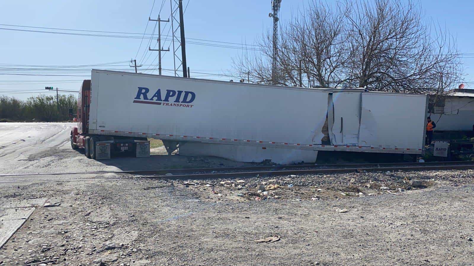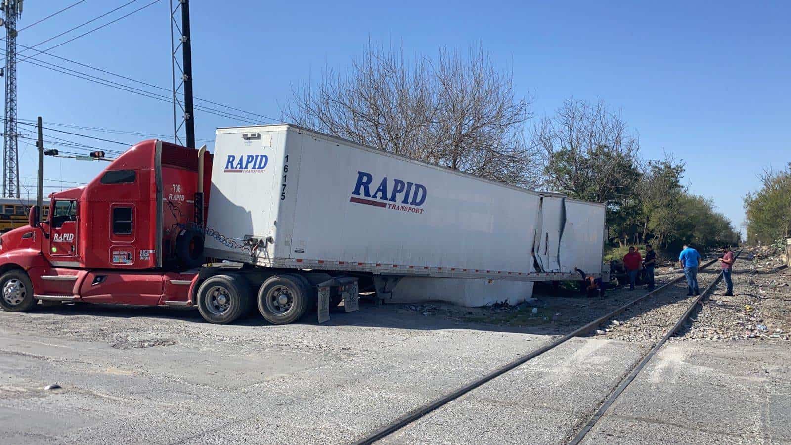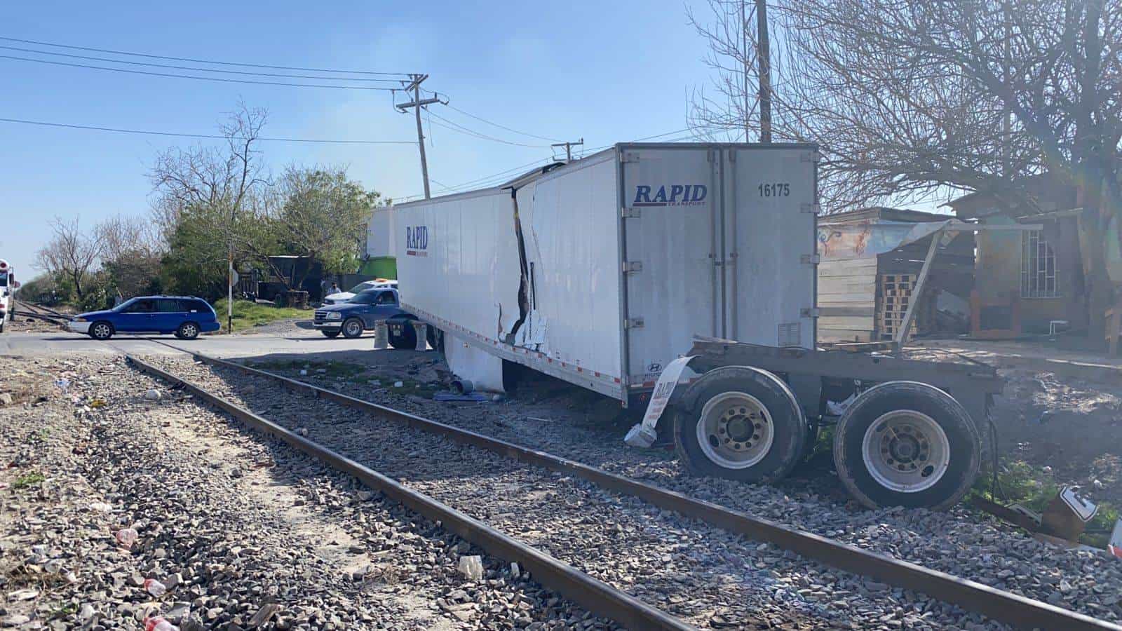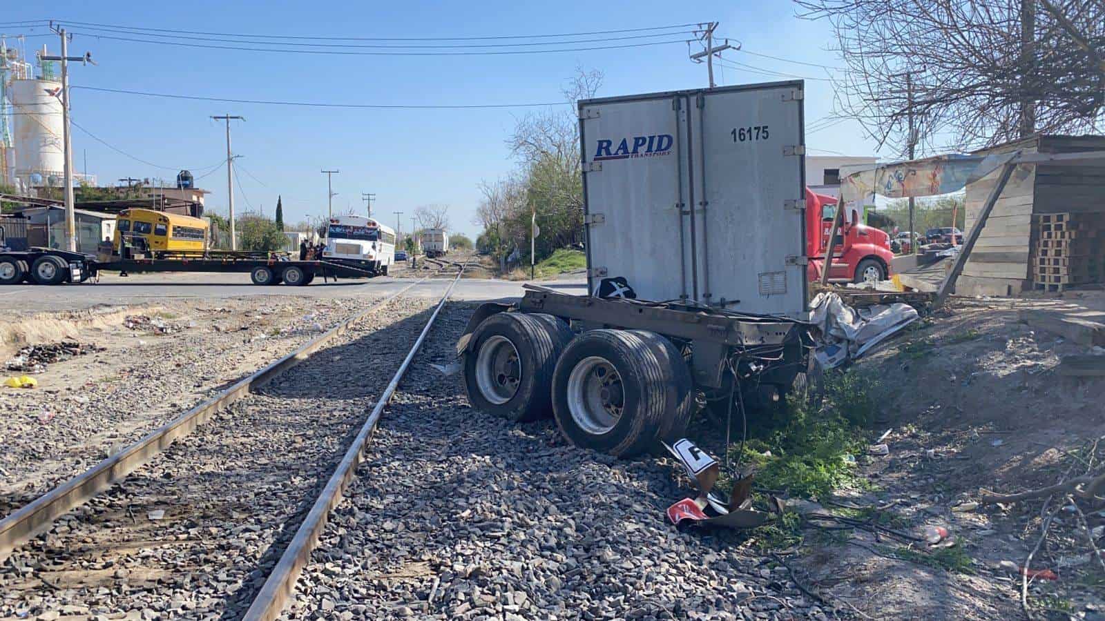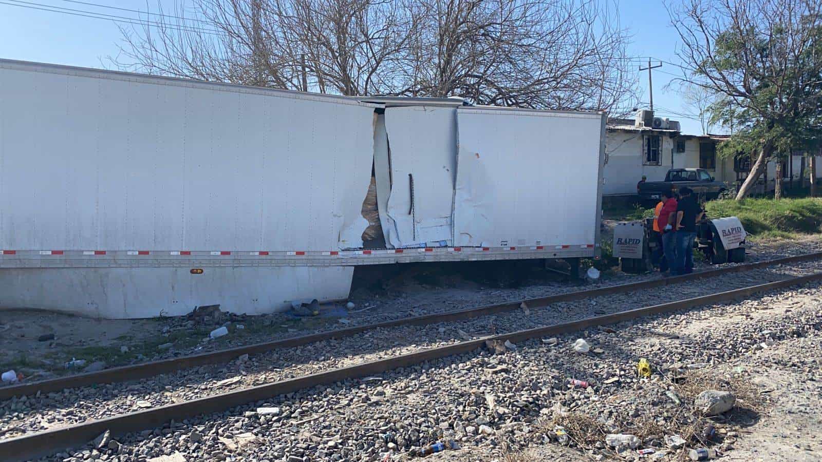 Con daños de consideración resultó la caja de un tracto camión luego de que el chofer tratara de ganarle el paso y chocará contra el tren.