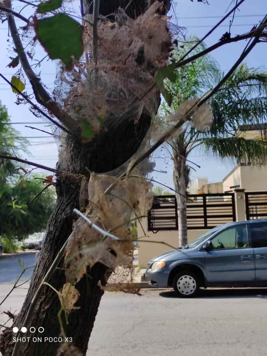 Se trata de una plaga de gusanos, la cual, además de afectar a la zona arbolada a la cual cubren de una especie de telaraña, genera afectaciones no solo a los vendedores, sino a los propios clientes que acuden a realizar sus compras de viernes a domingo.