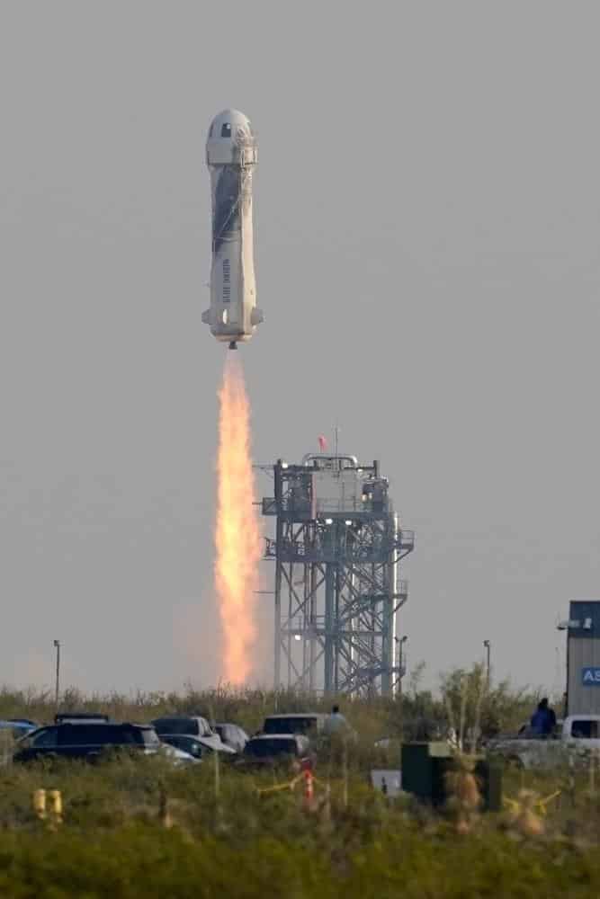 Blue Origin alcanzó una altitud de aproximadamente 66 millas (106 kilómetros), más de 10 millas (16 kilómetros) más alta que el viaje de Branson el 11 de julio. El propulsor de 60 pies (18 metros) aceleró a Mach 3 o tres veces la velocidad del sonido para llevar la cápsula lo suficientemente alta, antes de separarse y aterrizar en posición vertical.