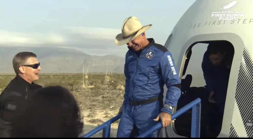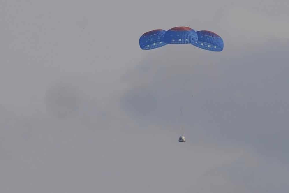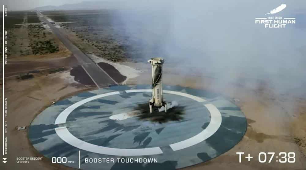 Los pasajeros tuvieron varios minutos de ingravidez para flotar alrededor de la espaciosa cápsula blanca con enormes ventanales. Se podían escuchar vítores, gritos y exclamaciones de "wow" desde la cápsula a través de una transmisión de audio. La cápsula aterrizó bajo paracaídas, y Bezos y sus invitados experimentaron brevemente casi seis veces la fuerza de la gravedad, o 6 G, en el camino de regreso.