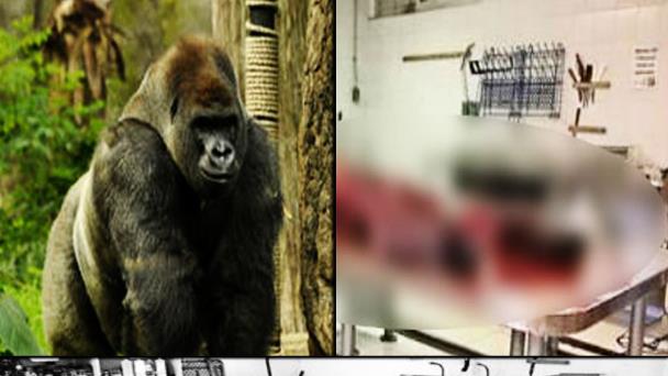 En otra de las fotografías se ve al gorila degollado, la cabeza está separada completamente del cuerpo. También le retiraron el labio inferior.